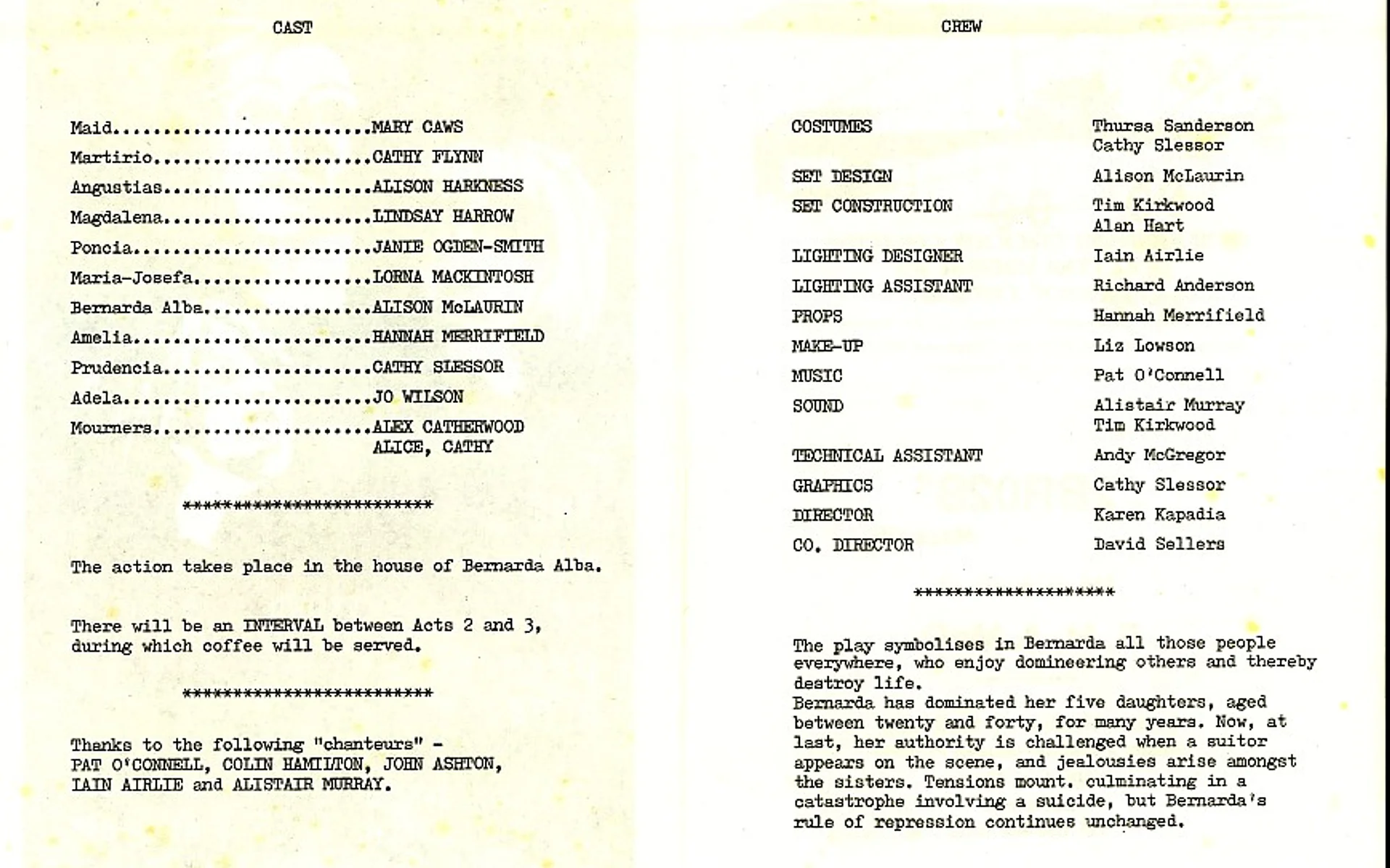 Set Construction / Sound Tim Kirkwood