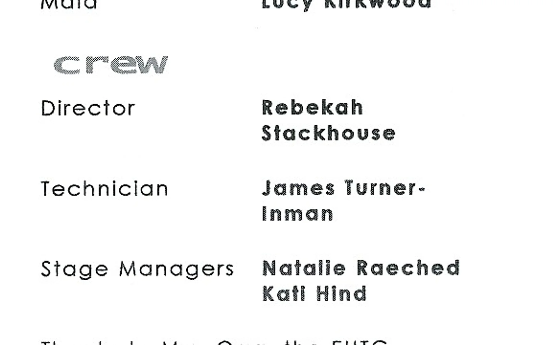 Stage Manager Rachel Peter