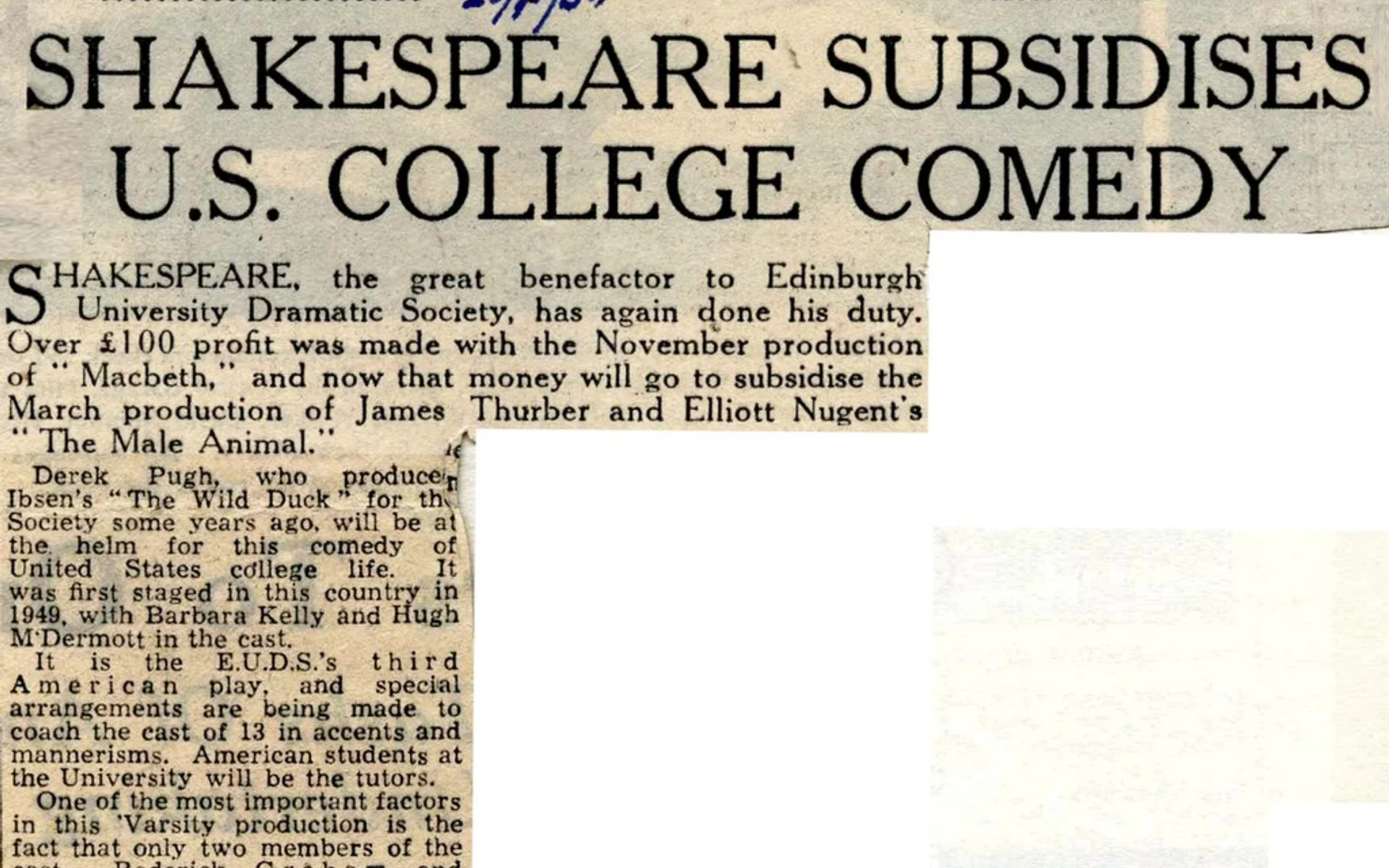 Actor (Newspaper Reporter) Maurice McLauchlin