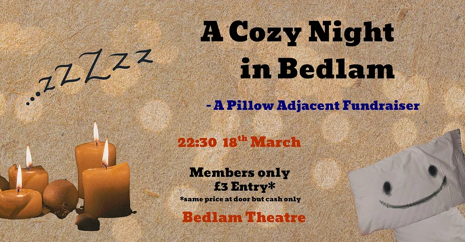 The Pillowman Production team is hosting a slumber party fundraiser! Wear your comfiest jammies and join us for an evening of crafts, stories, music, and even a PJ competition! Whether you are a night owl looking for some mid-night fun, or a home person just wanting to have a relaxed chat with your friends over a hot drink, this event is for you. So grab your night-in kit, and get ready for bedtime in Bedlam!!