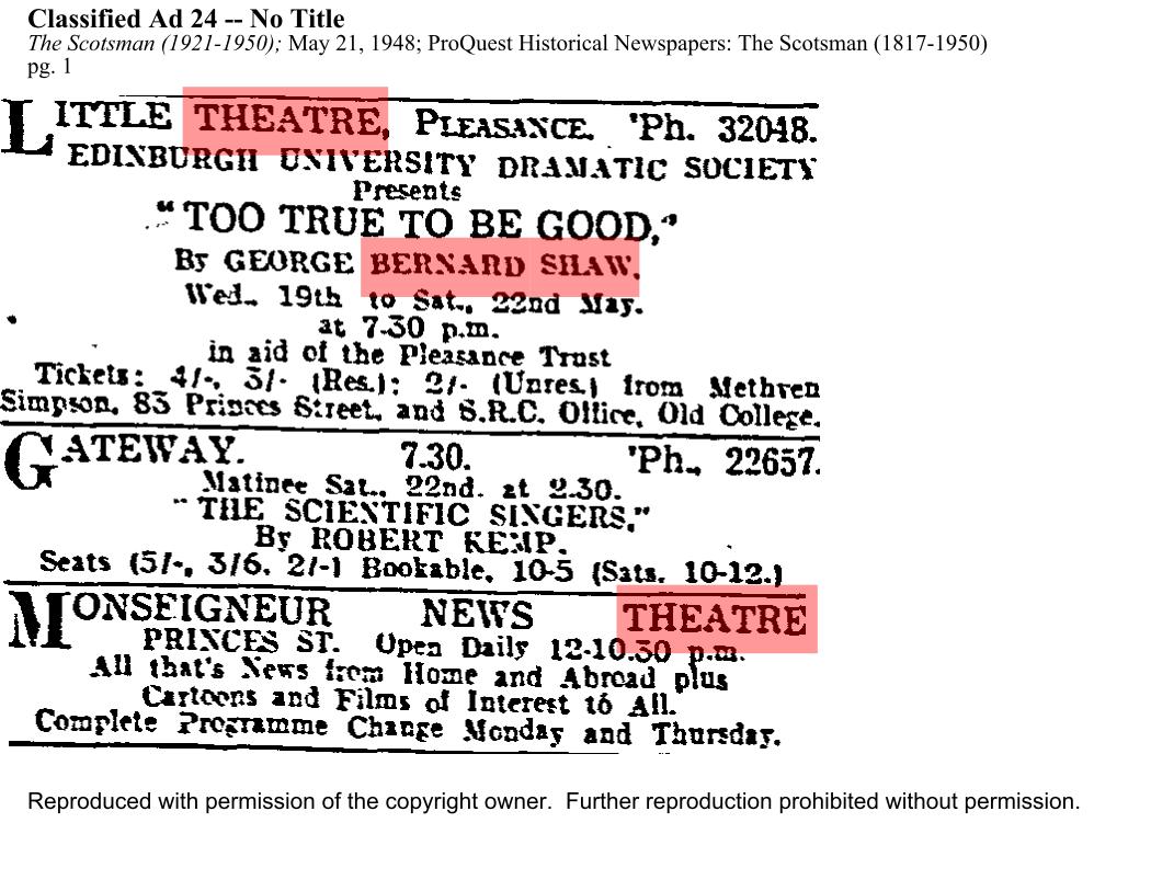 Wednesday 19 May - Saturday 22 May 1948