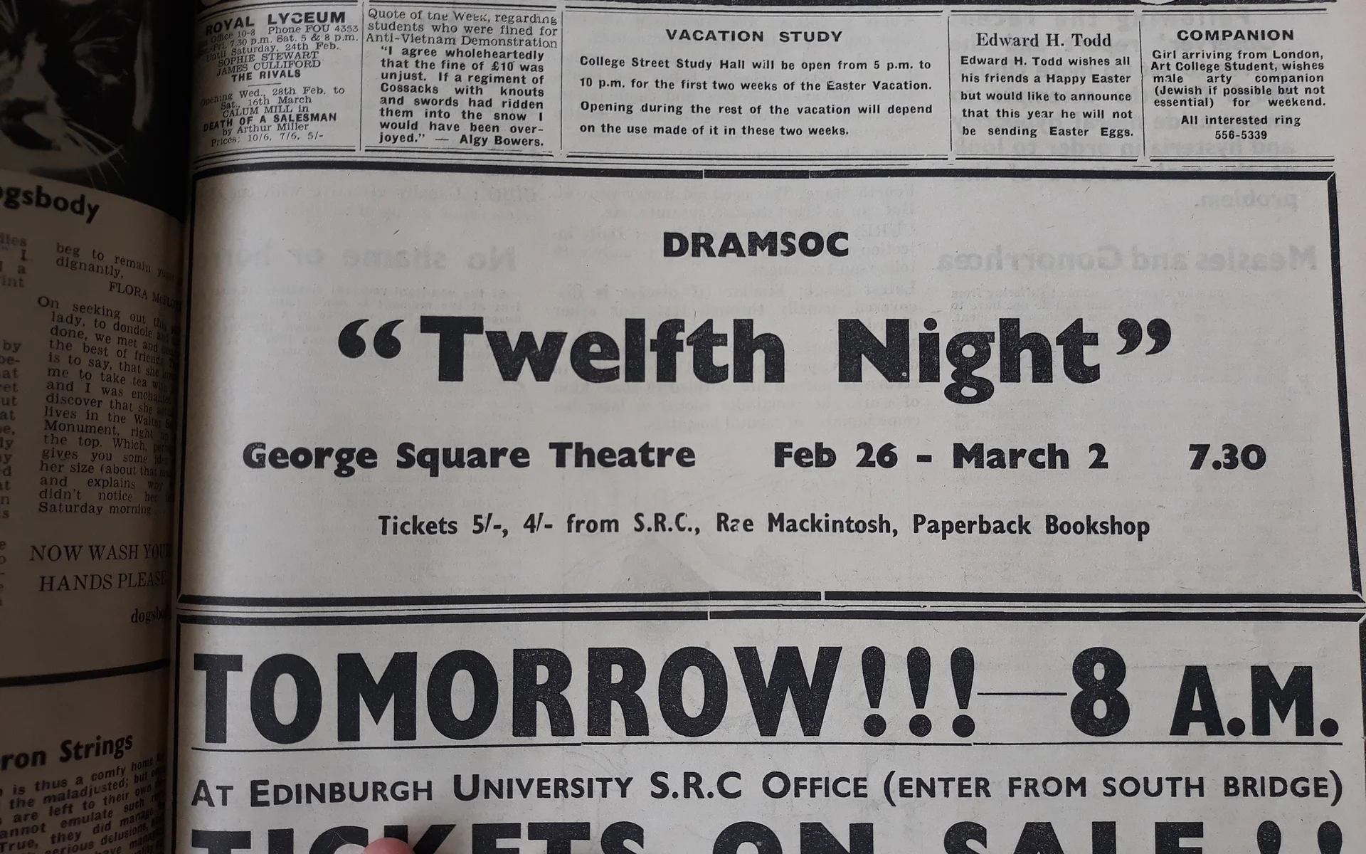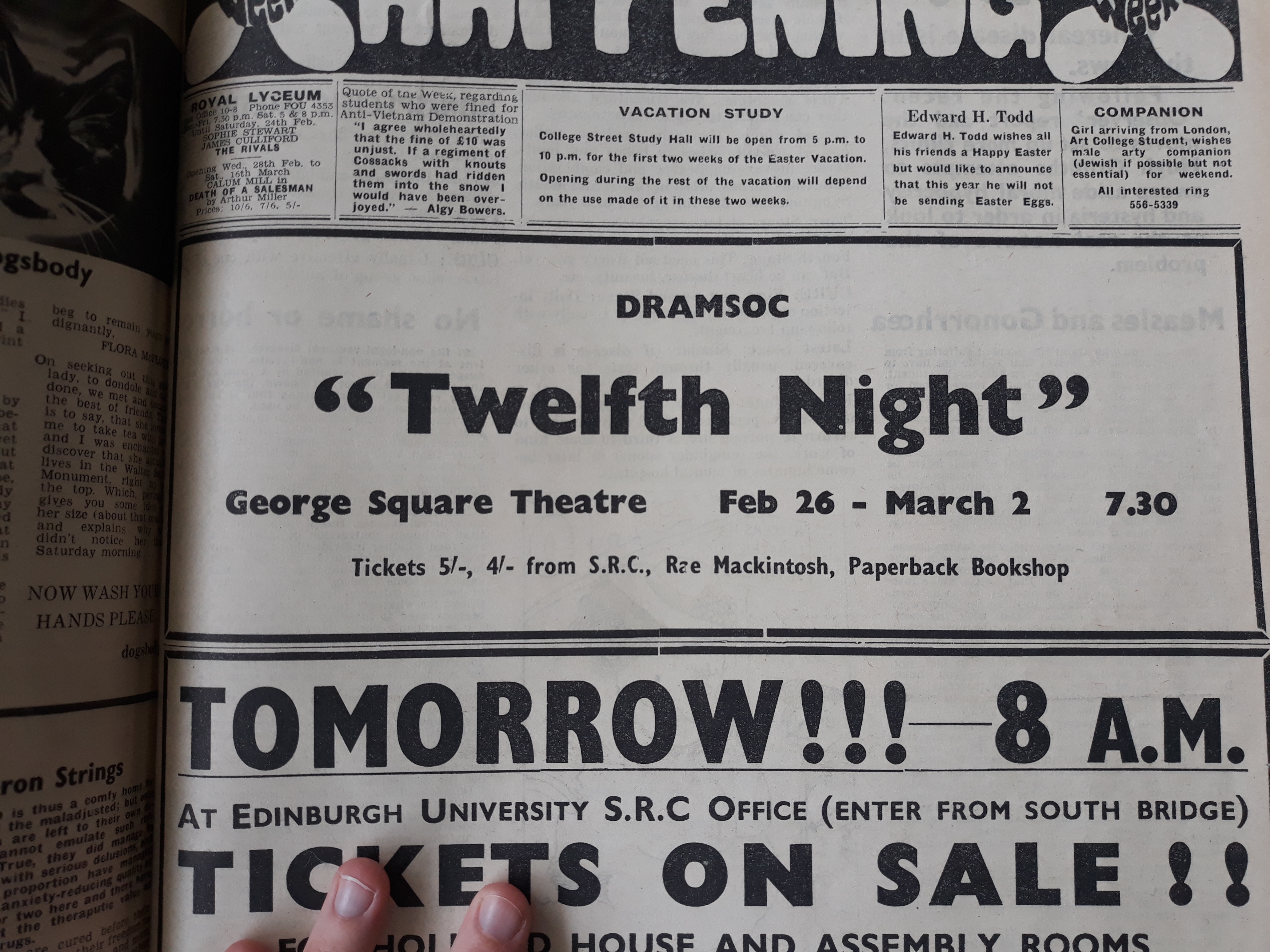 Monday 26 February - Saturday 02 March 1968