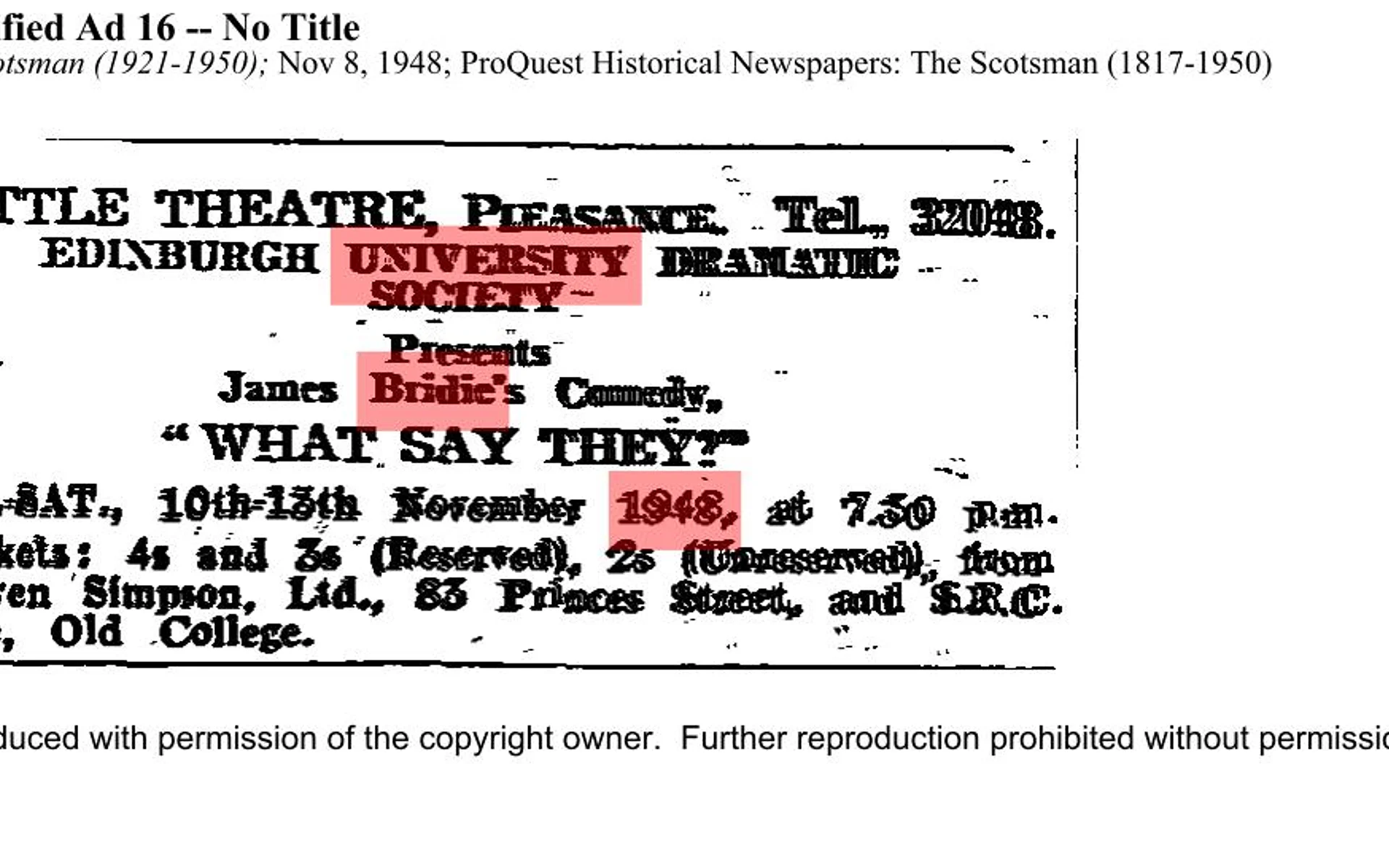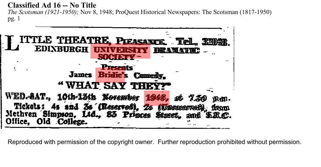 Wednesday 10 November - Saturday 13 November 1948