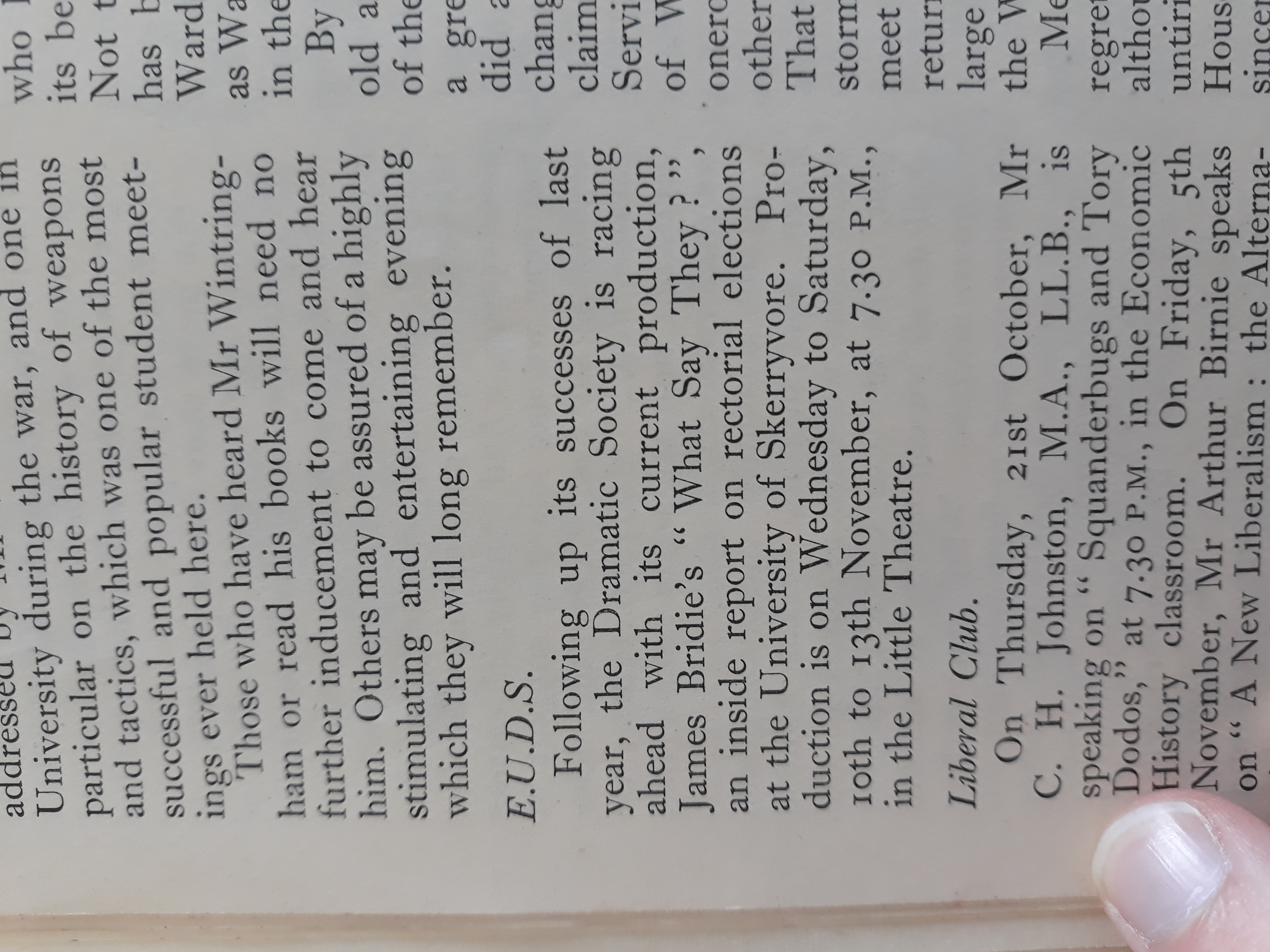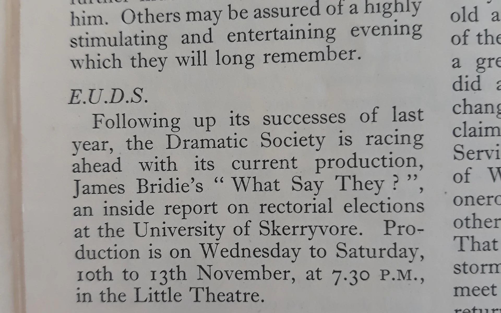 An inside report on rectorial elections at the University of Skerryvore.
