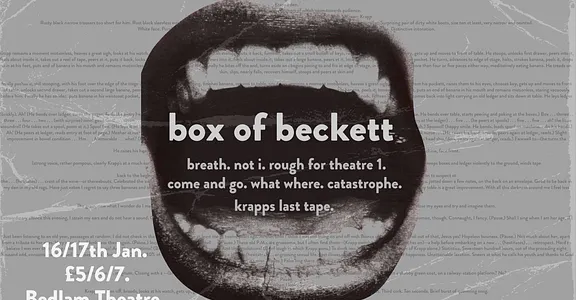 A Beckettian showcase. Our running order below. Breath - Inhale. Exhale. What Where - I switch on. They are the las...