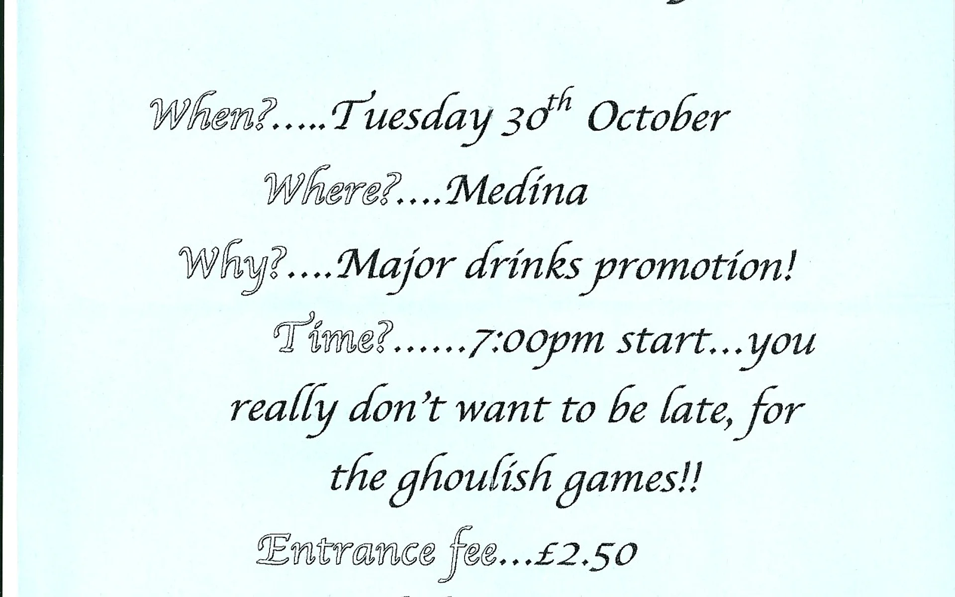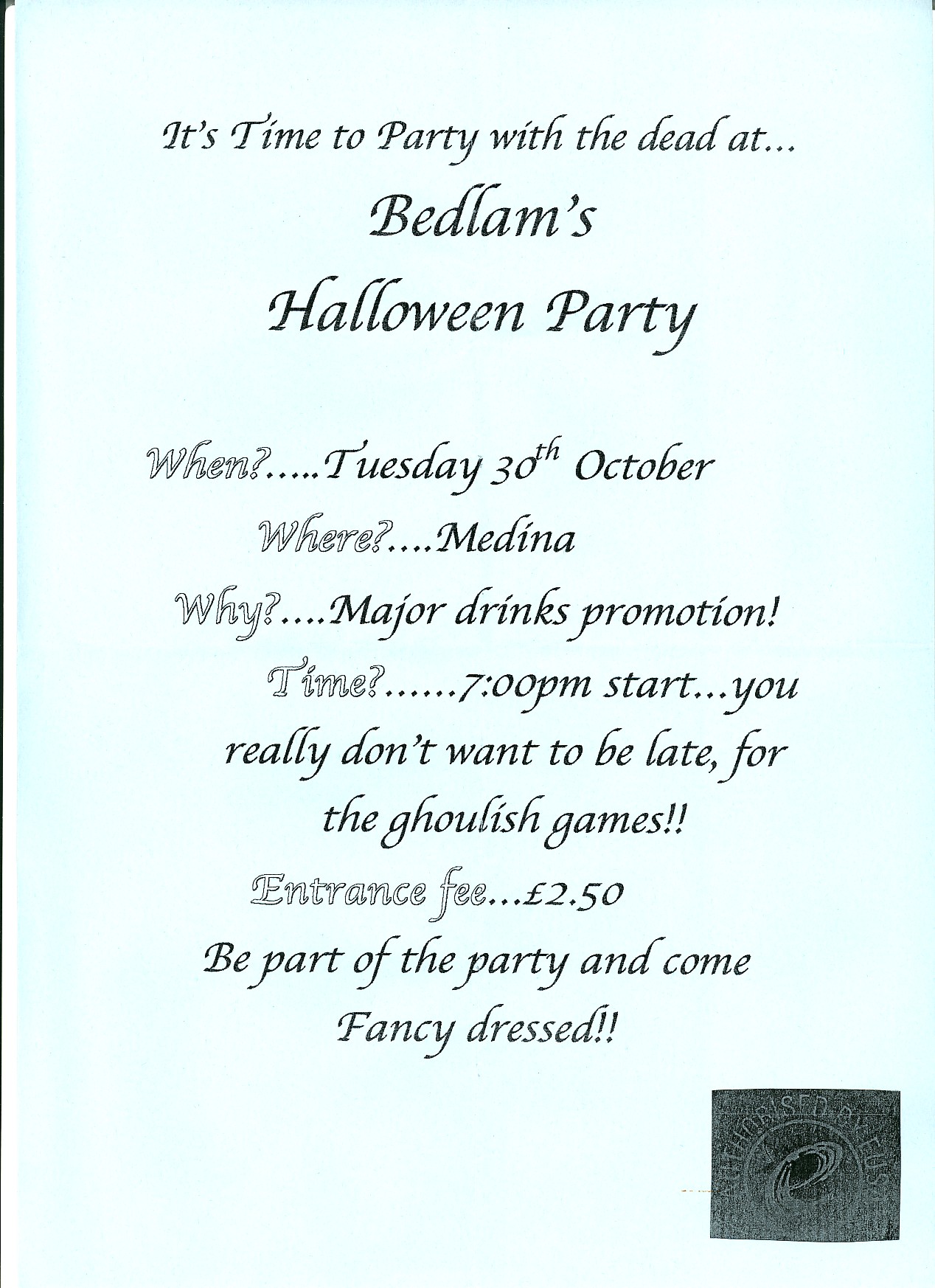 A place to show publicity for parties in the 2001/2 academic year